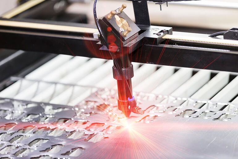 Отличная альтернатива плазменной. Суть лазерной резки заключается в мгновенной плавке метала под воздействием высокоточного луча. При обработке металлических листов толщиной 15 мм и более, место реза обязательно проходит охлаждение водой, воздухом или инертным газом. Применение лазерной резки распространено при изготовлении деталей из цветных металлов и сталей толщиной 12-20 мм. Возможность резки хрупких и тонких металлов – безусловное преимущество лазерной резки.